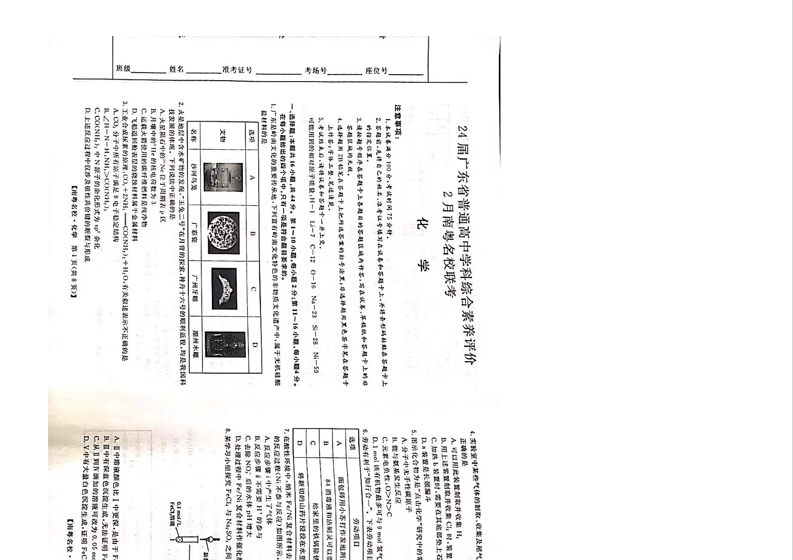 广东省南粤名校2024届高三下学期2月联考化学