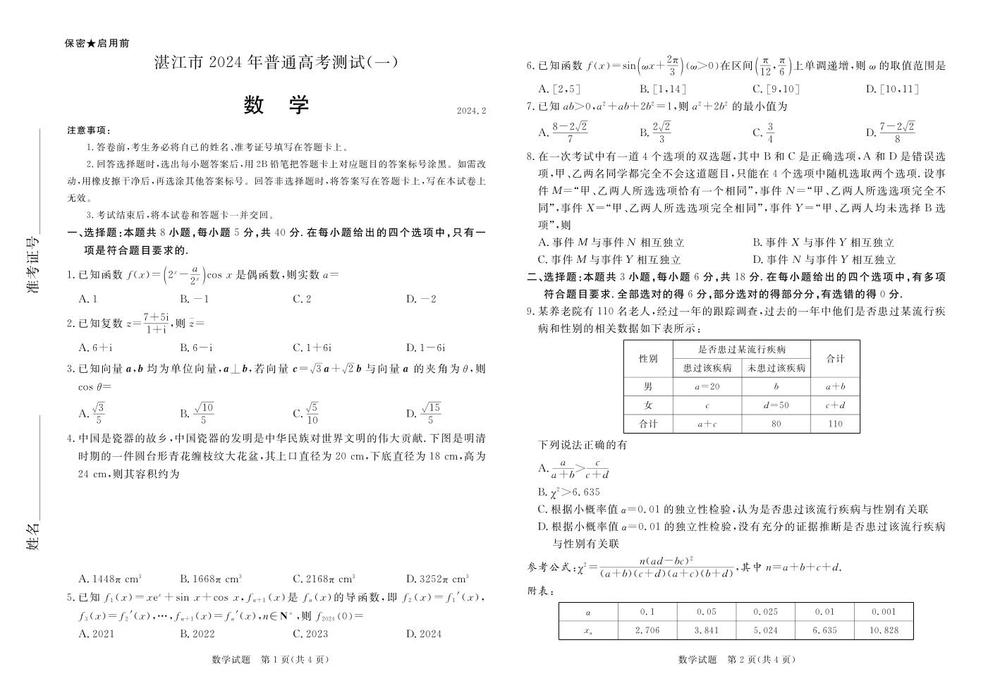 广东省湛江市2024届普通高考第一次模拟考试(湛江一模)数学