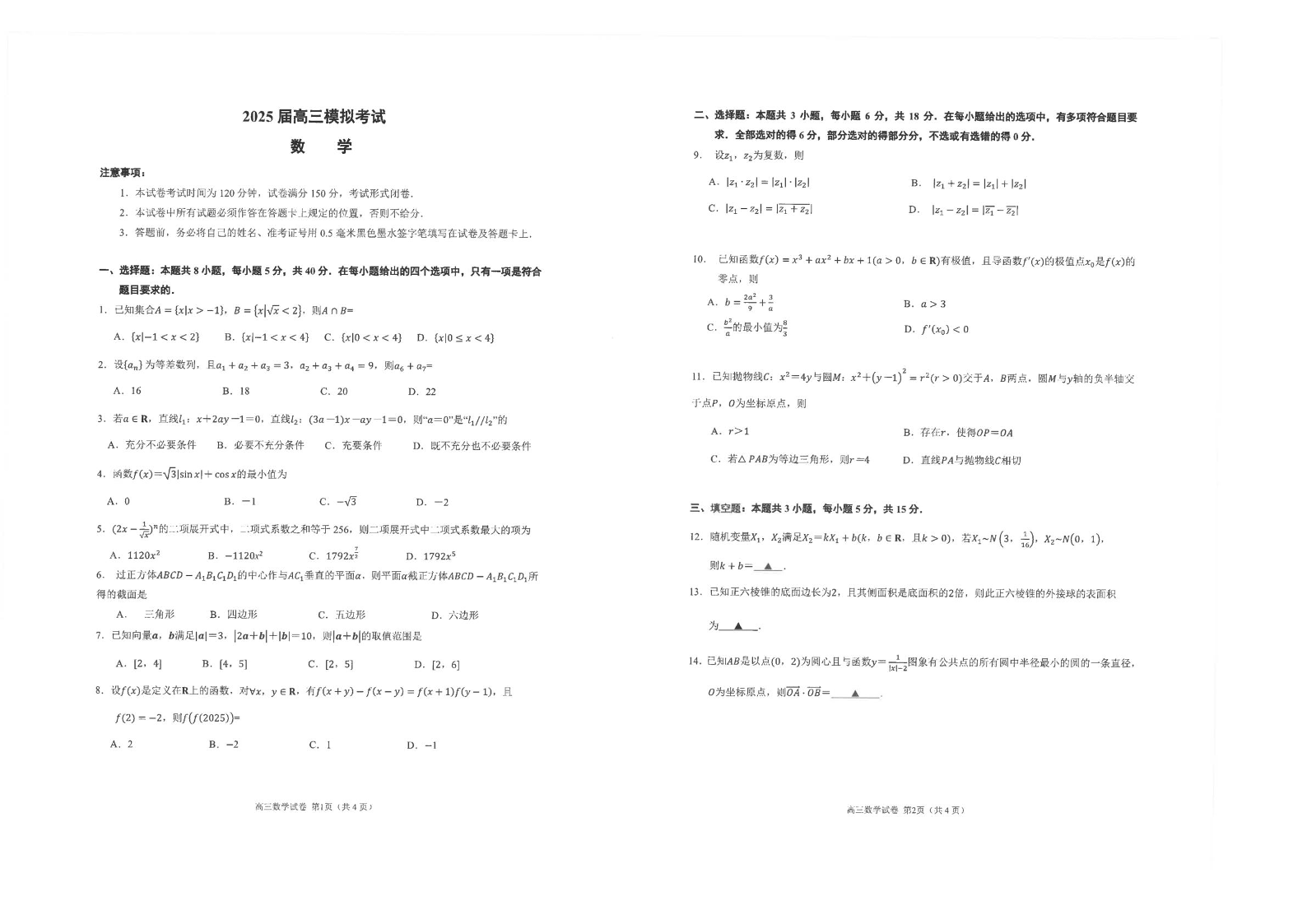 江苏省海安高级中学2025届下学期5月高三模拟考数学+答案