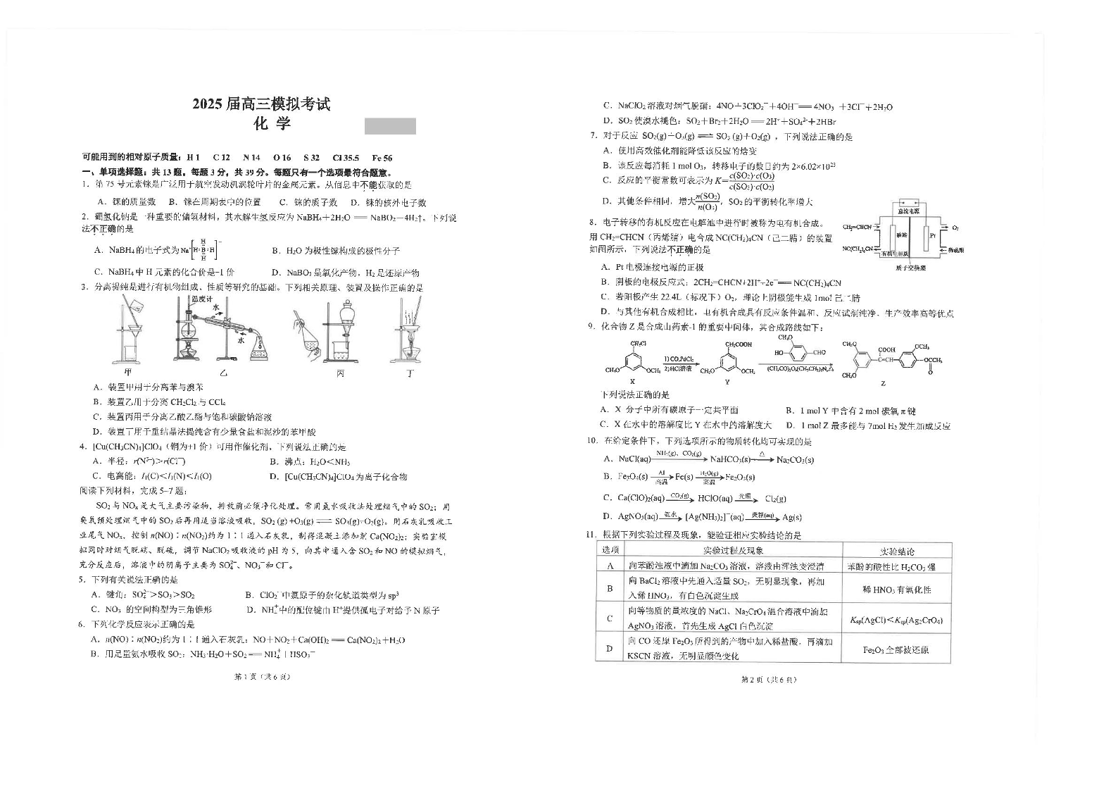 江苏省海安高级中学2025届高三下学期5月模拟考化学+答案