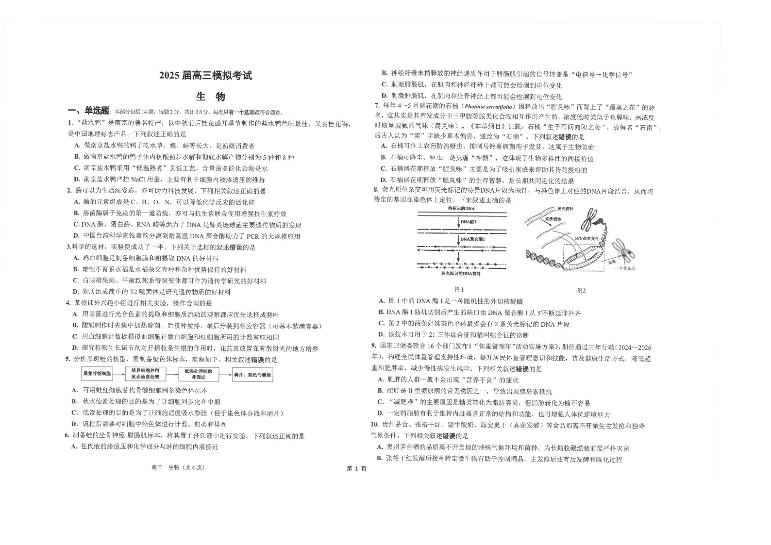江苏省海安高级中学2025届下学期5月高三模拟考生物+答案