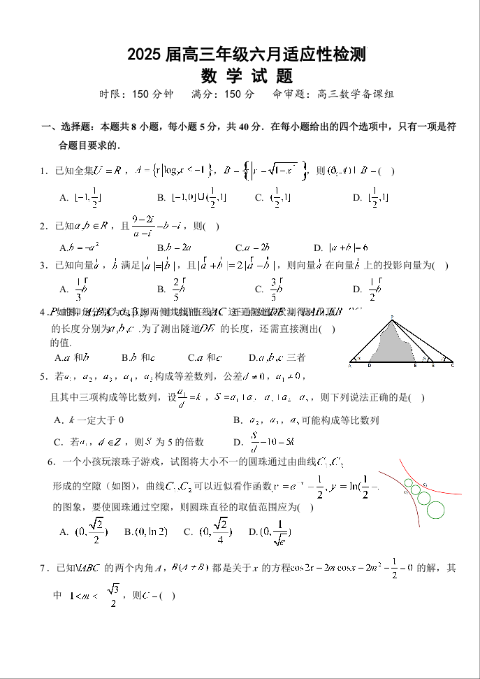 湖北省荆市州沙市中学2025届高三六月适应性检测数学