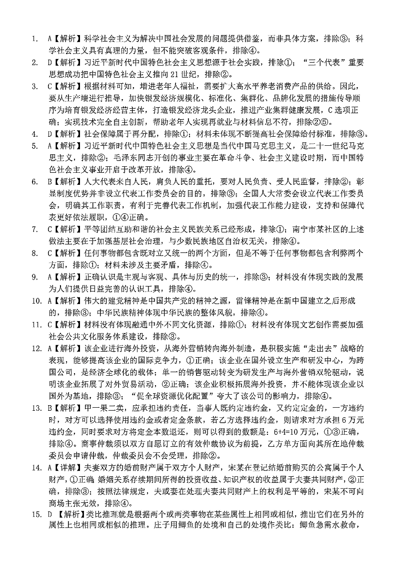 广西2024届邕衡金卷柳州高中、南宁三中高三一轮复习诊断性联考政治答案