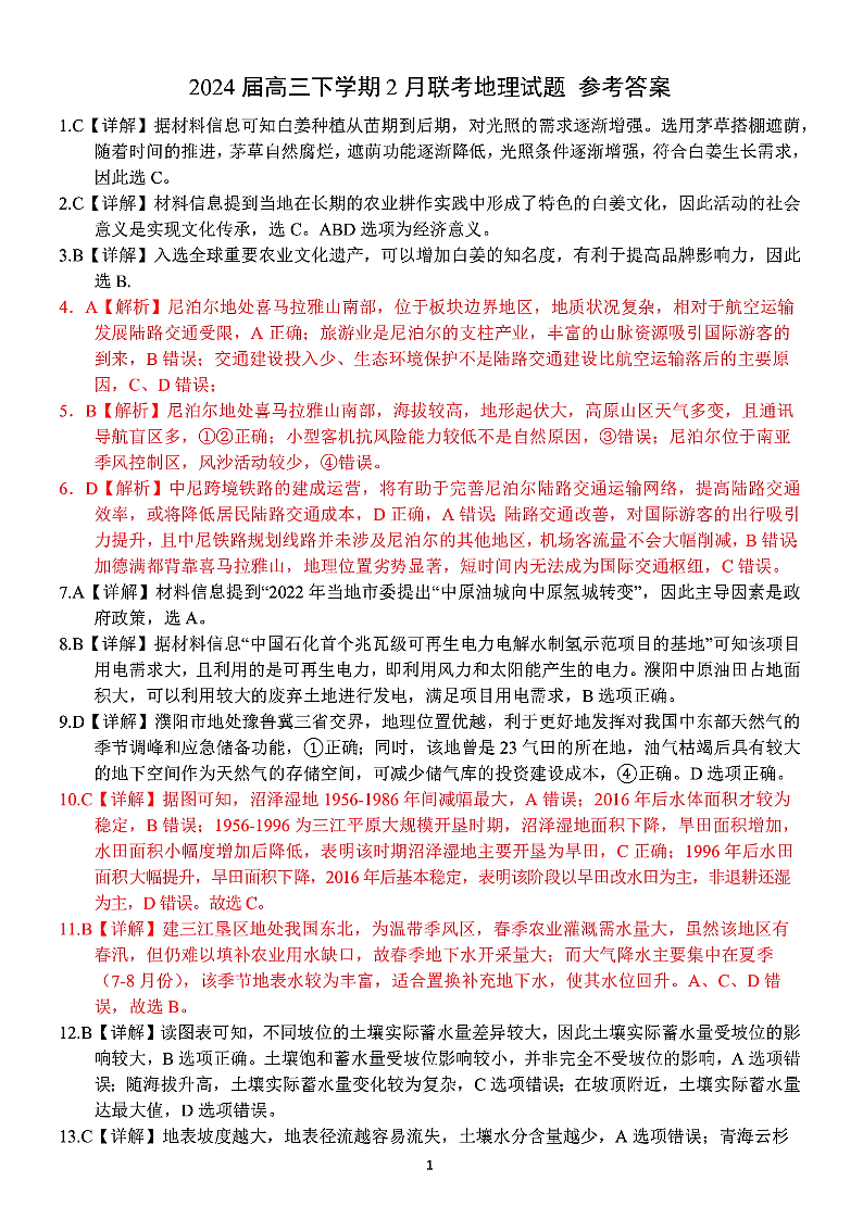 广西2024届邕衡金卷柳州高中、南宁三中高三一轮复习诊断性联考地理答案