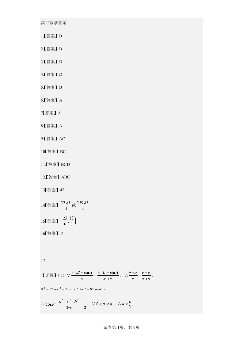 河北省石家庄市辛集市2024届高三上学期2月期末数学答案