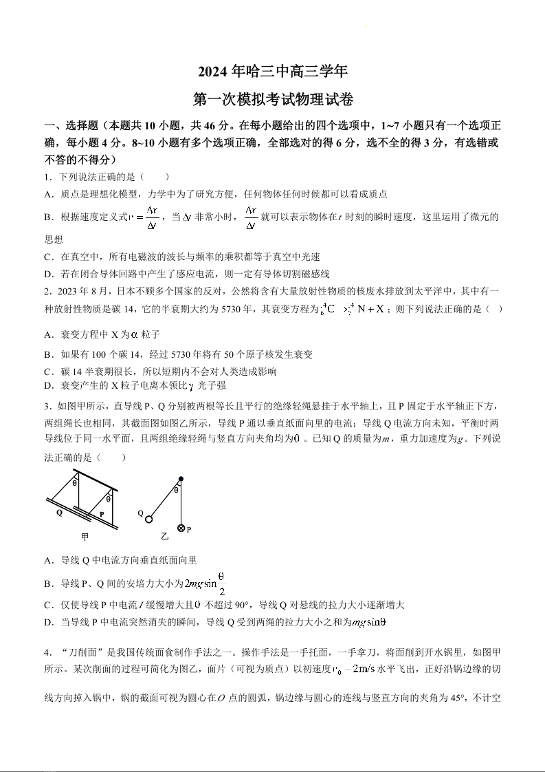 黑龙江省哈尔滨市2024届第三中学校高三下学期第一次模拟考试物理