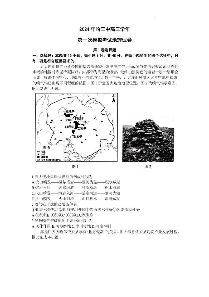 黑龙江省哈尔滨市2024届第三中学校高三下学期第一次模拟考试地理