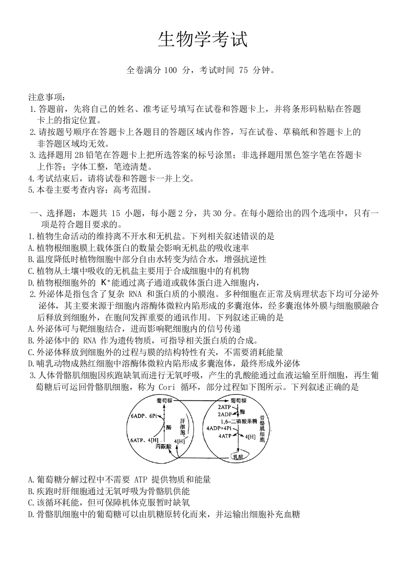 黑龙江省齐齐哈尔市2024届高三下学期一模生物
