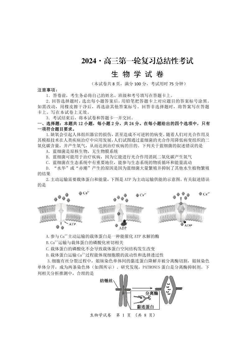 湖南省2024届高三下学期一轮复习总结性考试生物