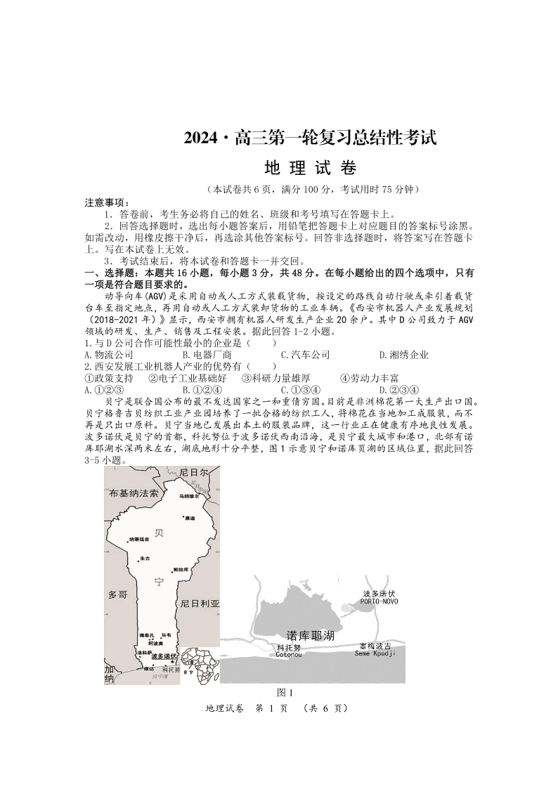 湖南省2024届高三下学期一轮复习总结性考试地理