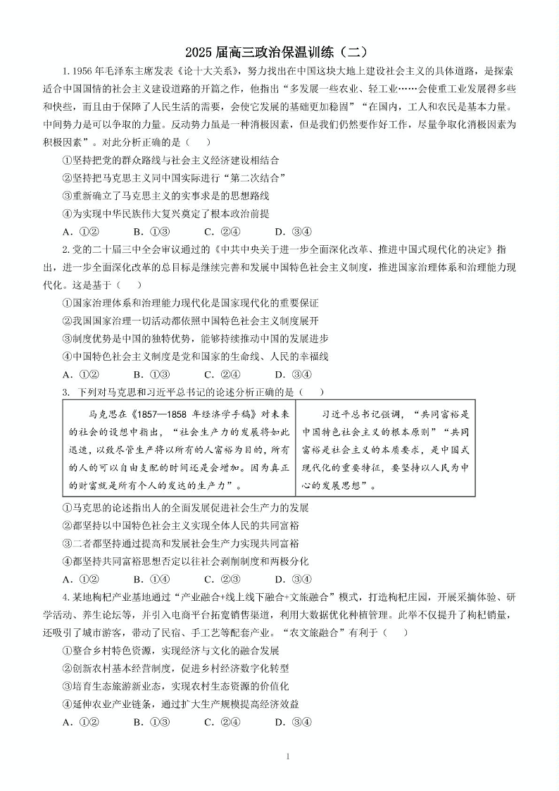 湖南省长沙市长郡中学2025届高三下学期保温卷(二)政治+答案
