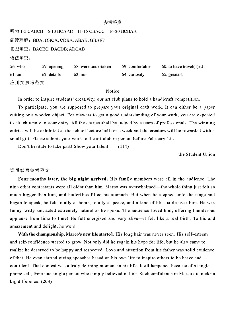 吉林省东北师大附中、长春市十一高中、吉林一中、四平一中、松原实验中学2024届高三上学期1月联合模拟考试英语答案