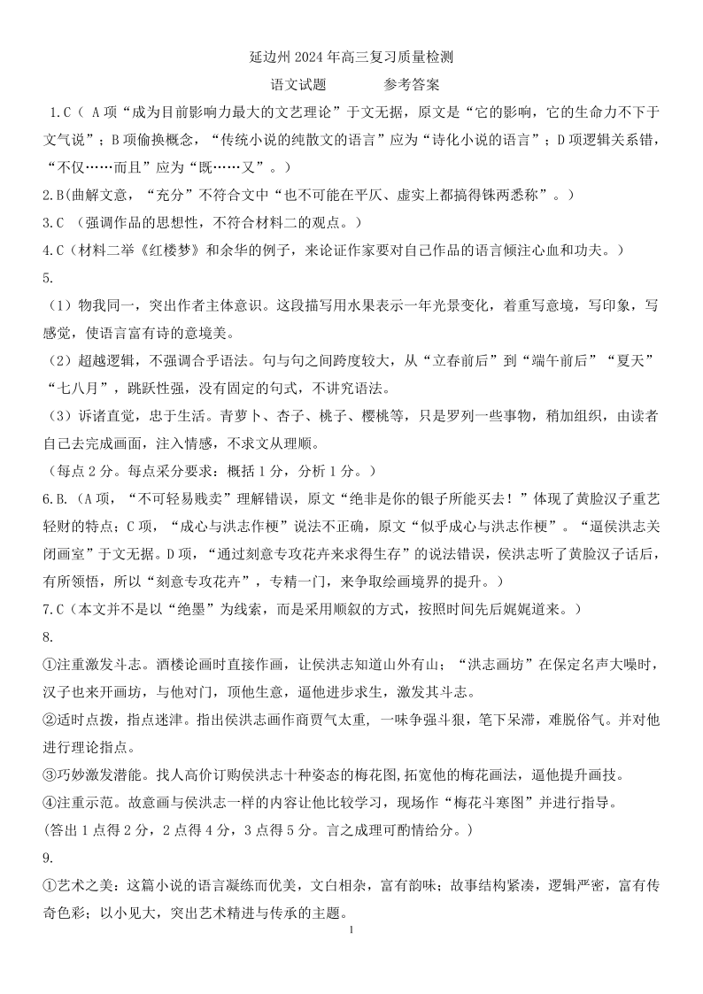 吉林省延边州2024届高三教学质量检测(一模)语文答案