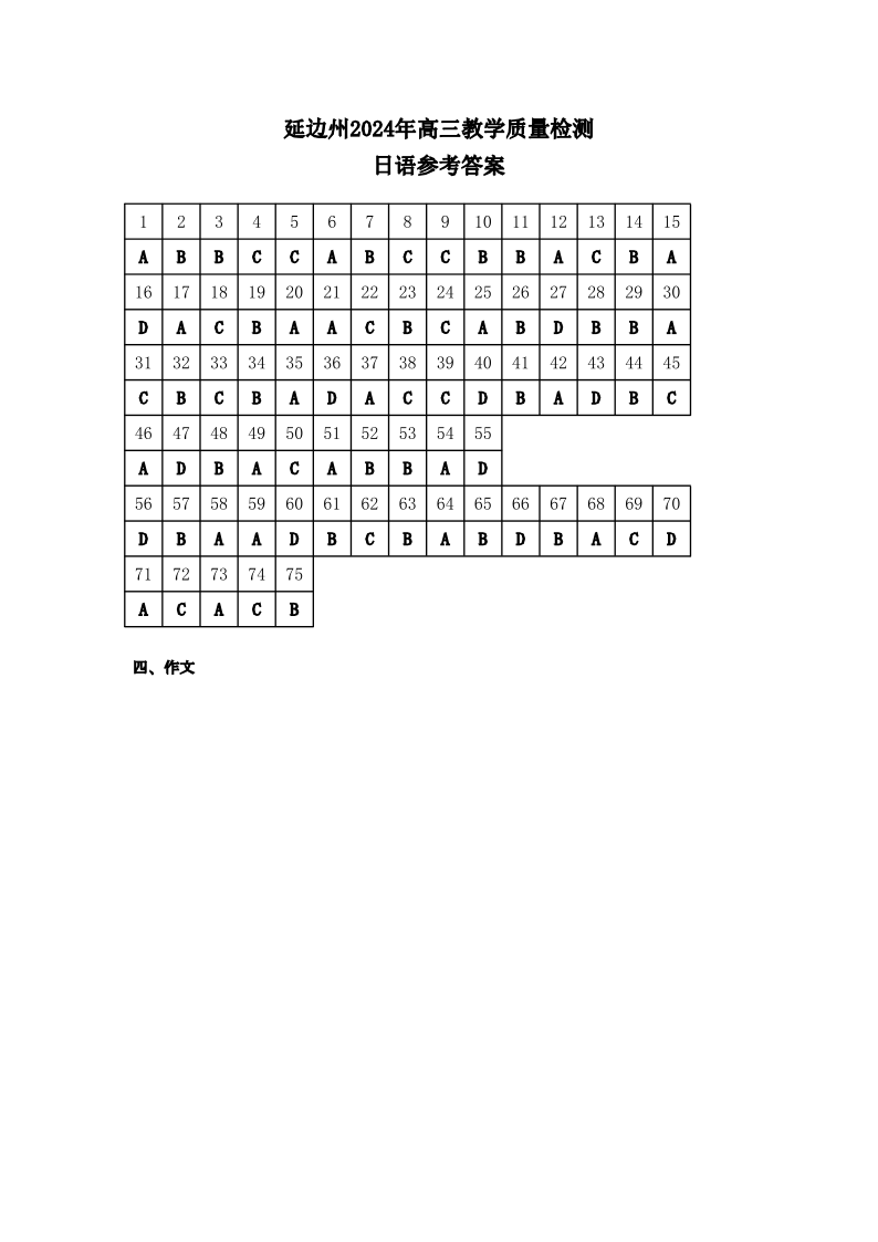 吉林省延边州2024届高三教学质量检测(一模)日语答案