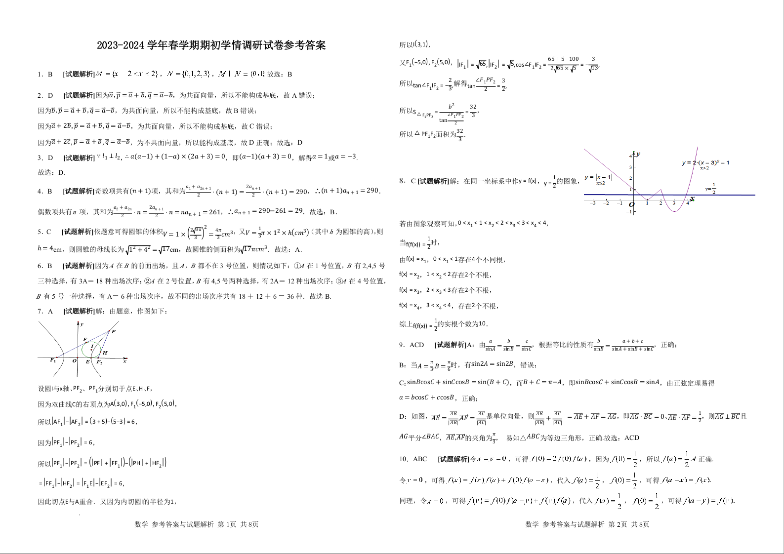 江苏省无锡市四校2024届高三下学期期初学期调研数学答案