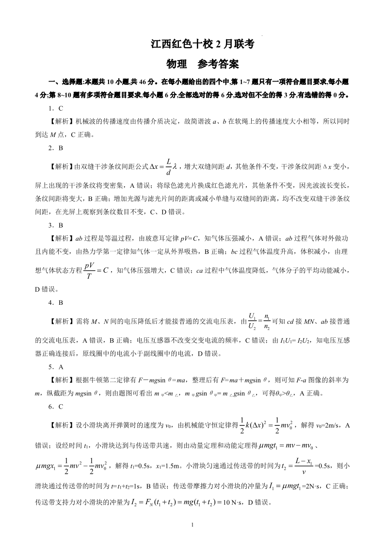 江西省红色十校2024届高三下学期2月联考物理答案
