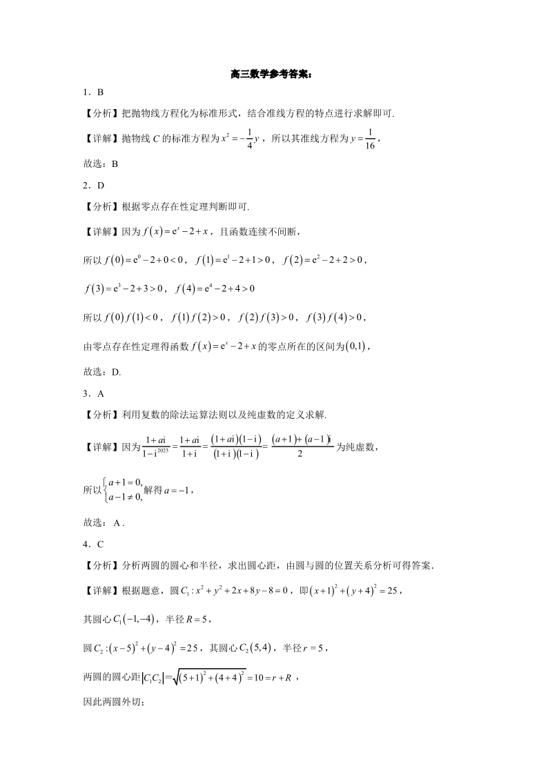 山东省济宁市第一中学2024届高三上学期2月定时检测(期末)数学答案