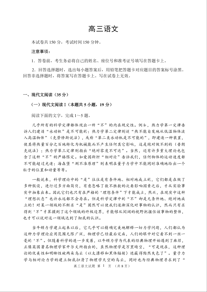 山东省威海市2024届高三上学期期末考试语文