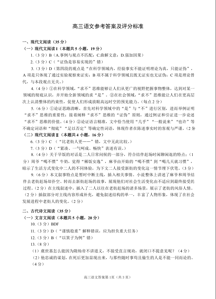 山东省威海市2024届高三上学期期末考试语文答案