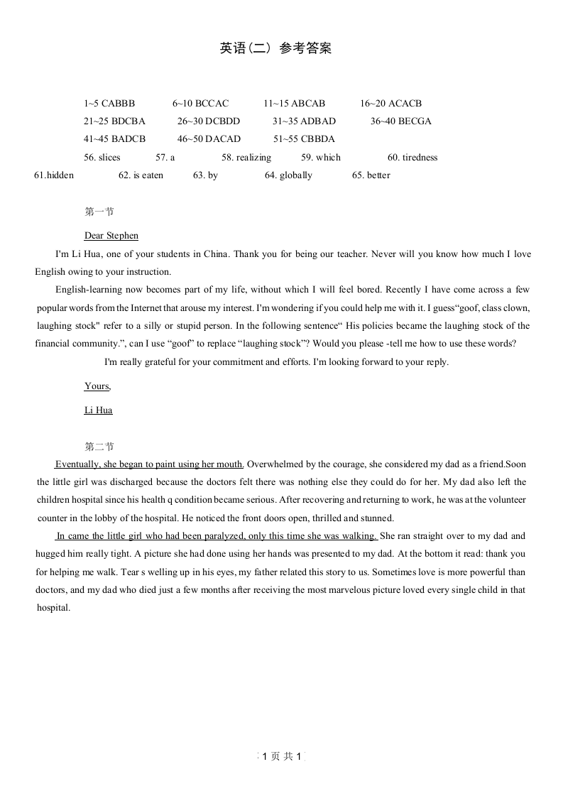 重庆康德2024年普通高等学校招生全国统一考试高考模拟调研卷(二)英语答案