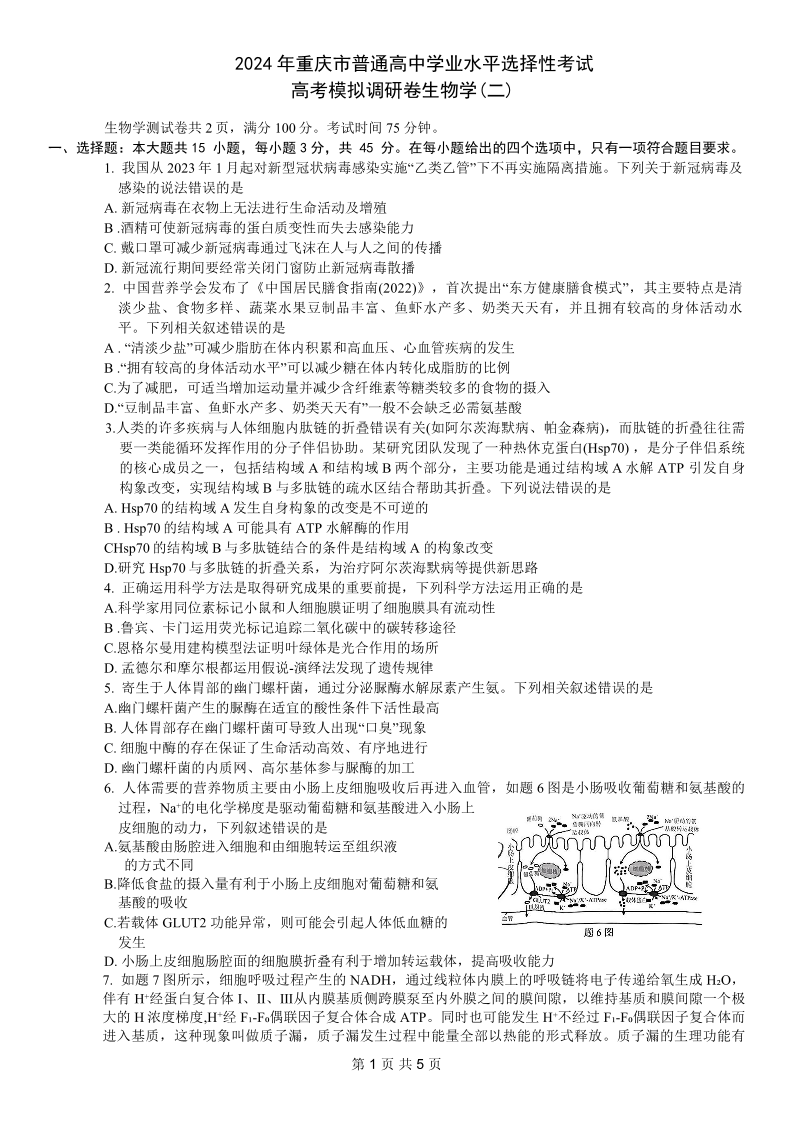 重庆康德2024年普通高等学校招生全国统一考试高考模拟调研卷(二)生物