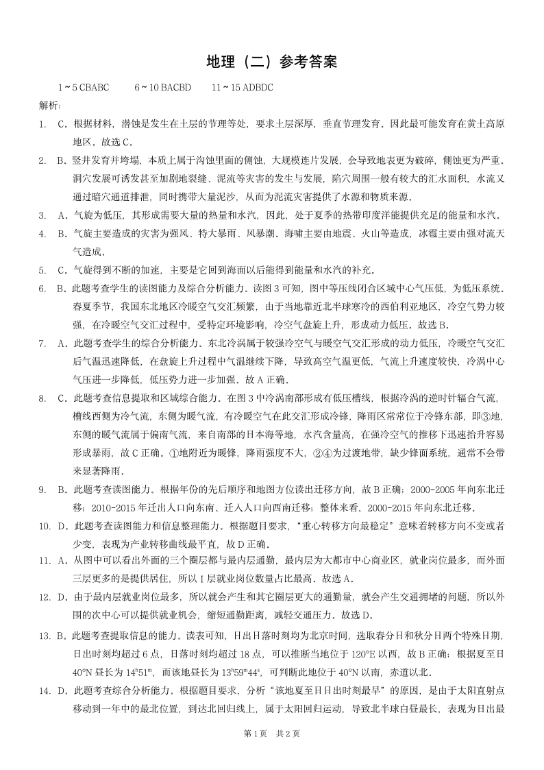 重庆康德2024年普通高等学校招生全国统一考试高考模拟调研卷(二)地理答案