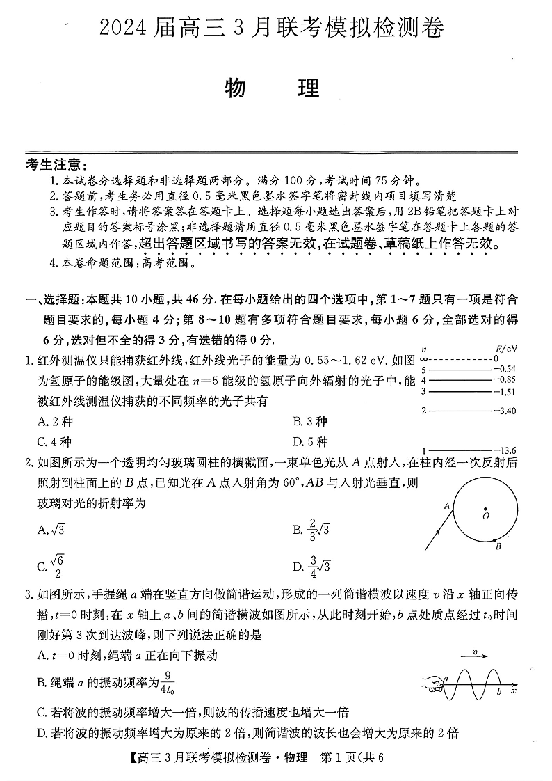 东北三省2024届高三3月联考模拟检测卷物理+答案