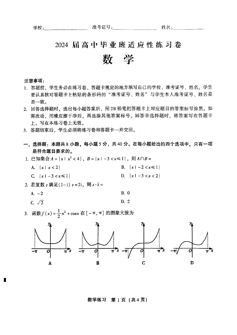 福建省三明市2024届高三下学期3月质检(一模)数学