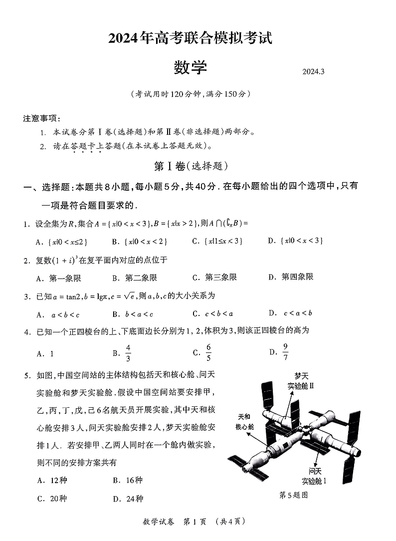广西壮族自治区2024届高三3月联合模拟考试数学