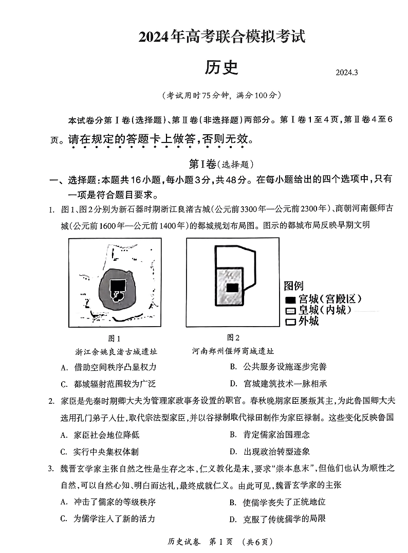 广西壮族自治区2024届高三3月联合模拟考试历史