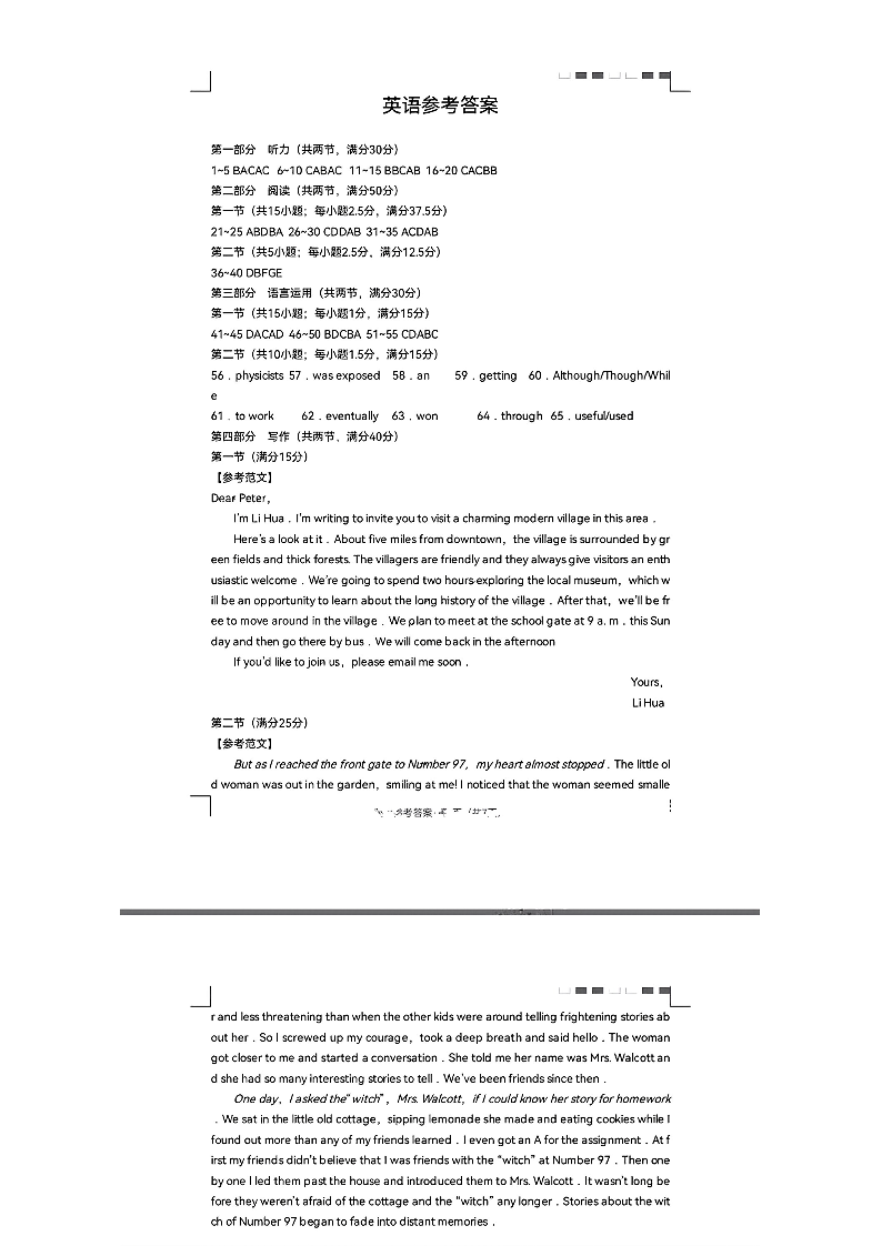 贵州省贵阳市第一中学2024届高三下学期一模考试英语答案