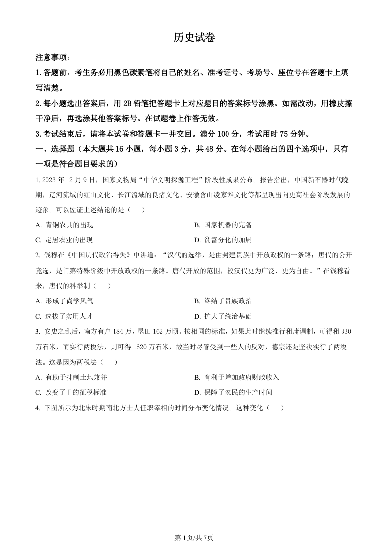 贵州省贵阳市第一中学2024届高三下学期一模考试历史(原卷版)