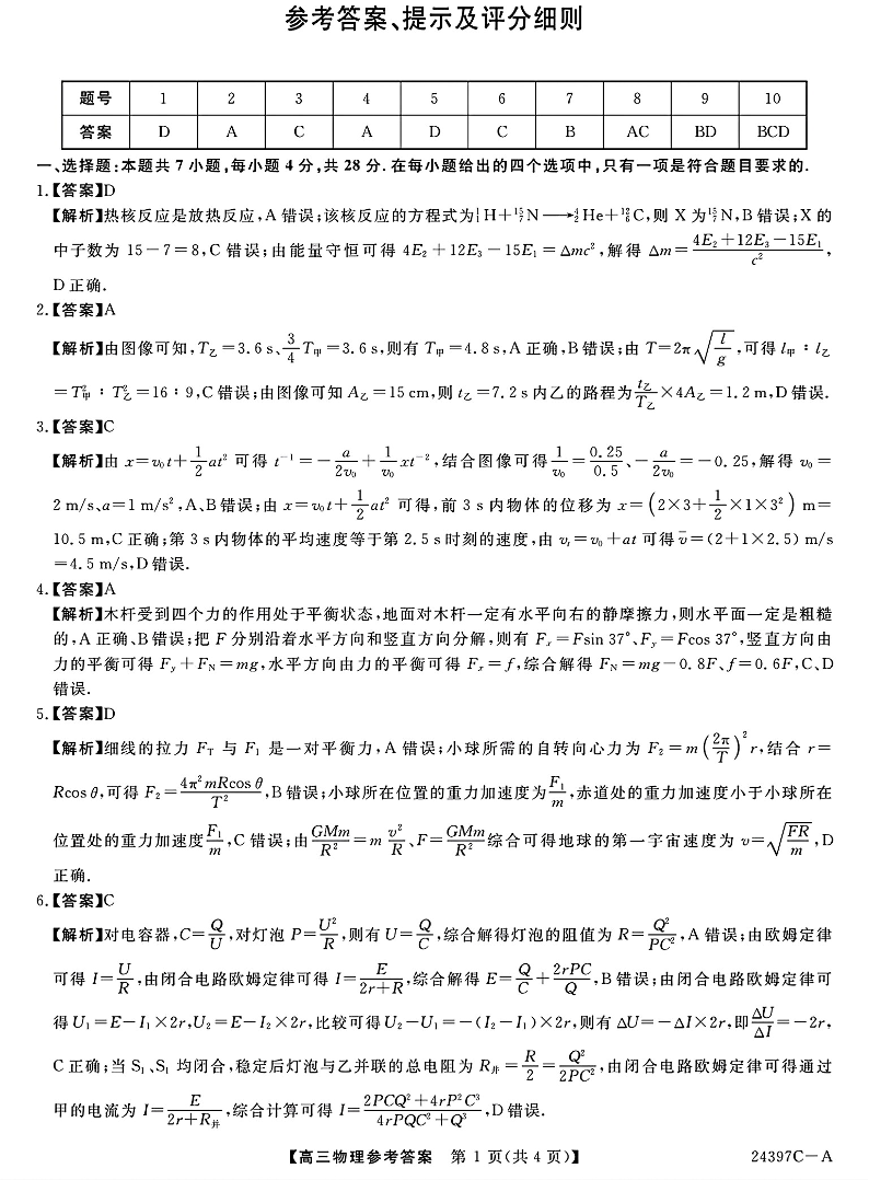 河北省金科大联考2024届高三下学期3月质量检测物理答案