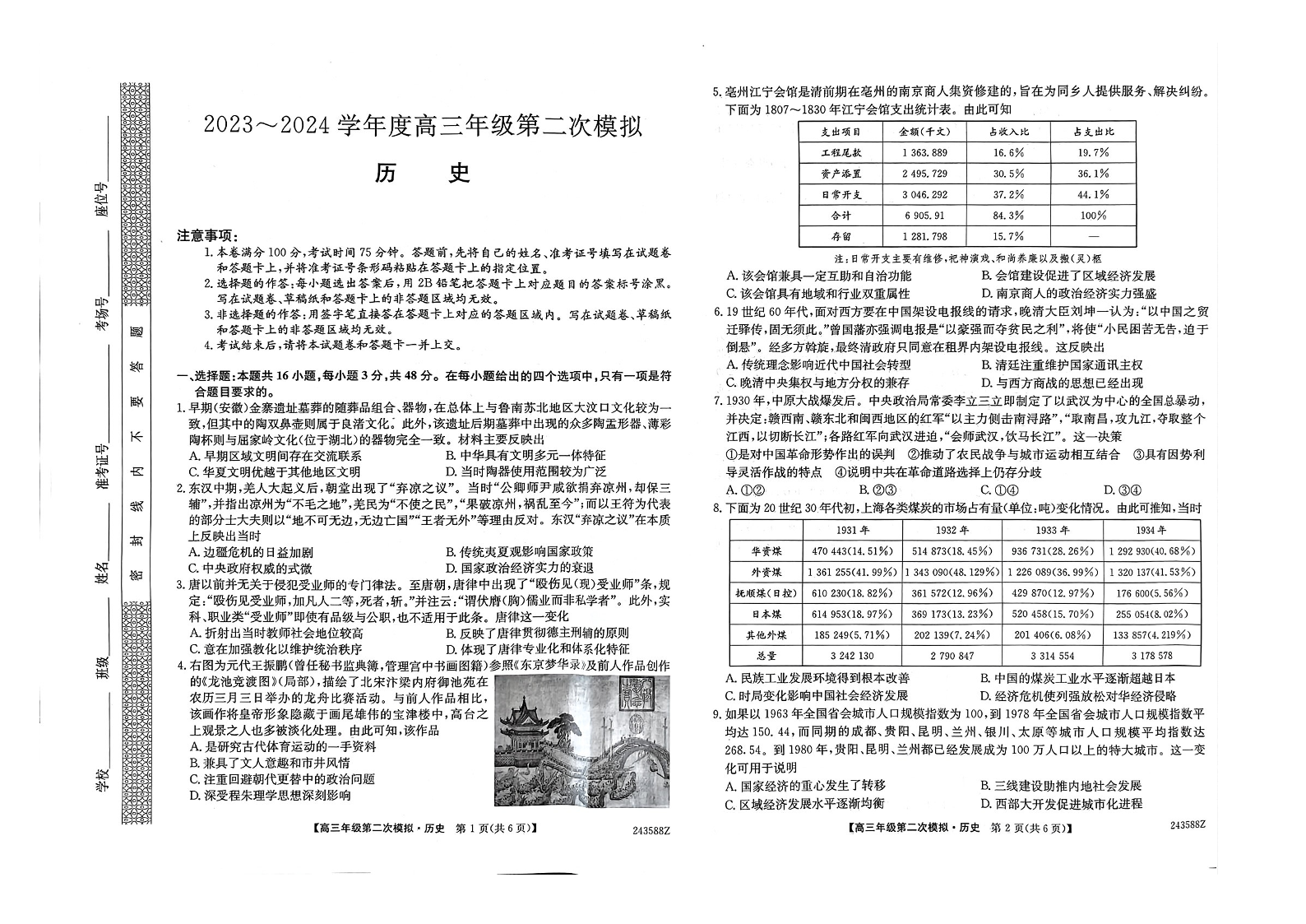 黑龙江省2024届部分学校高三下学期第二次模拟考试历史