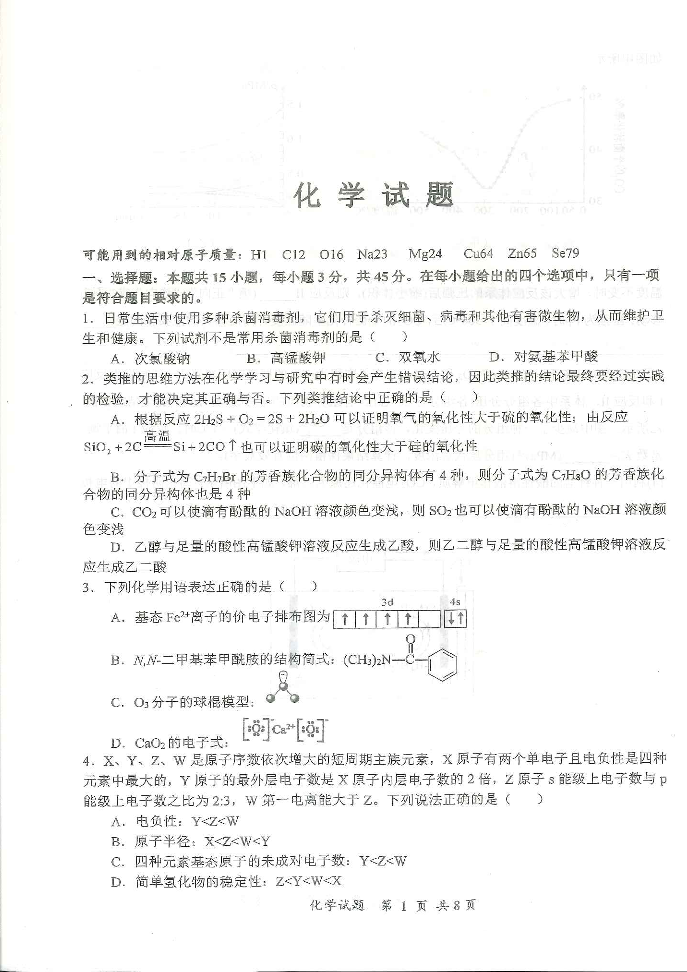 湖北省十一校2024届高三下学期第二次联考化学