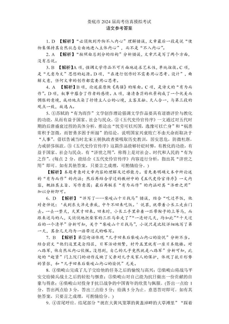 湖南省娄底市2024届高三下学期仿真模拟考试(娄底三模)语文答案