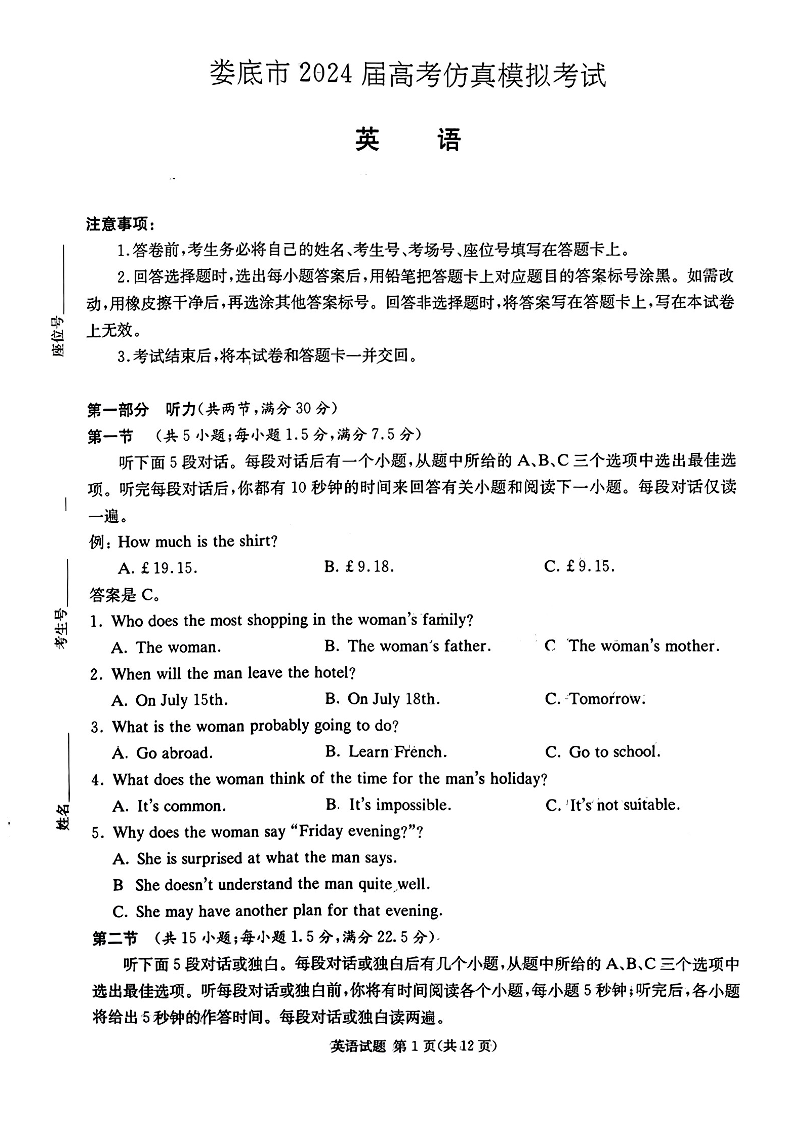湖南省娄底市2024届高三下学期仿真模拟考试(娄底三模)英语