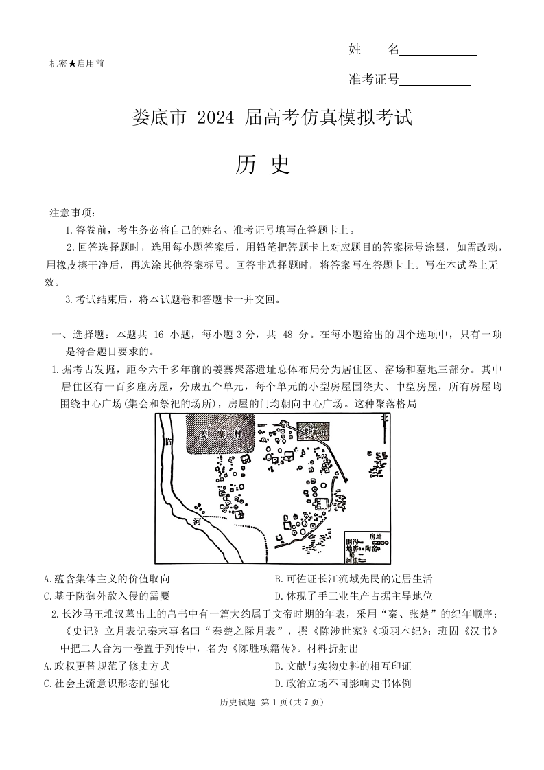 湖南省娄底市2024届高三下学期仿真模拟考试(娄底三模)历史