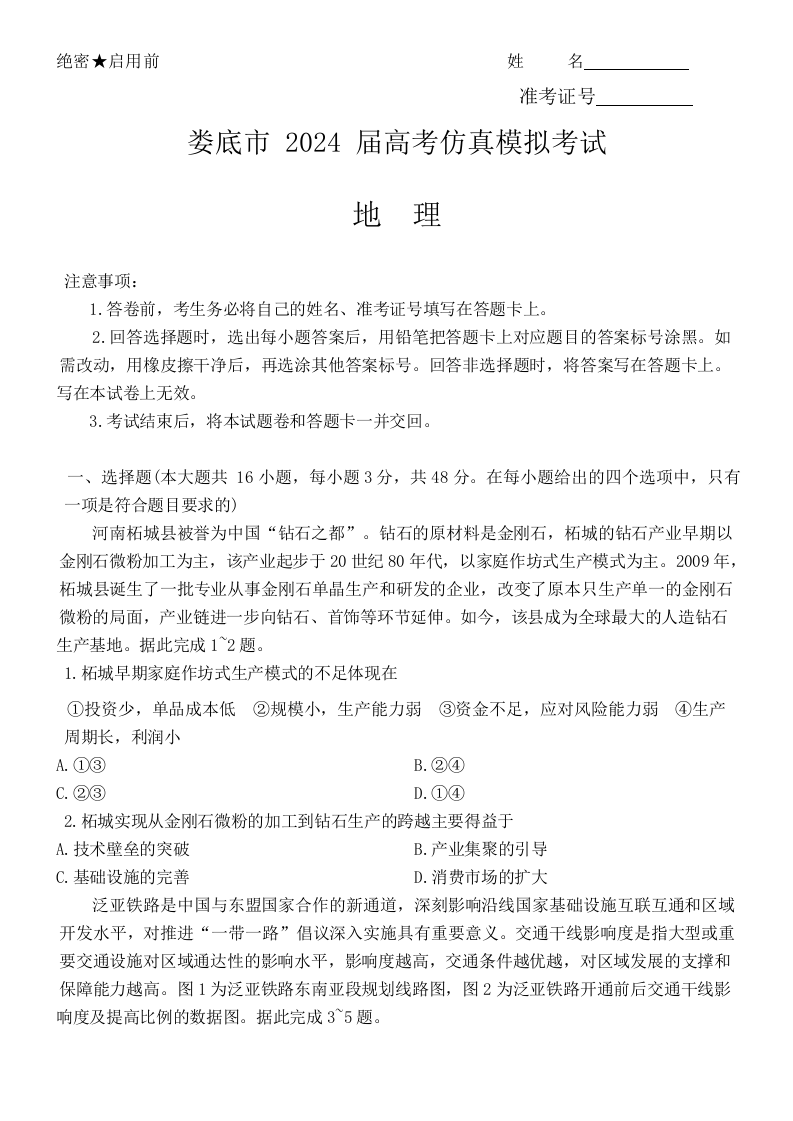 湖南省娄底市2024届高三下学期仿真模拟考试(娄底三模)地理