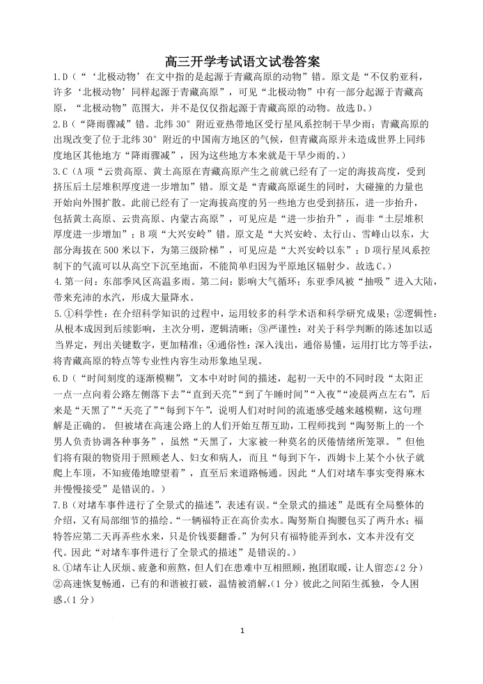 江苏省扬州中学2024届高三下学期阶段练习语文答案