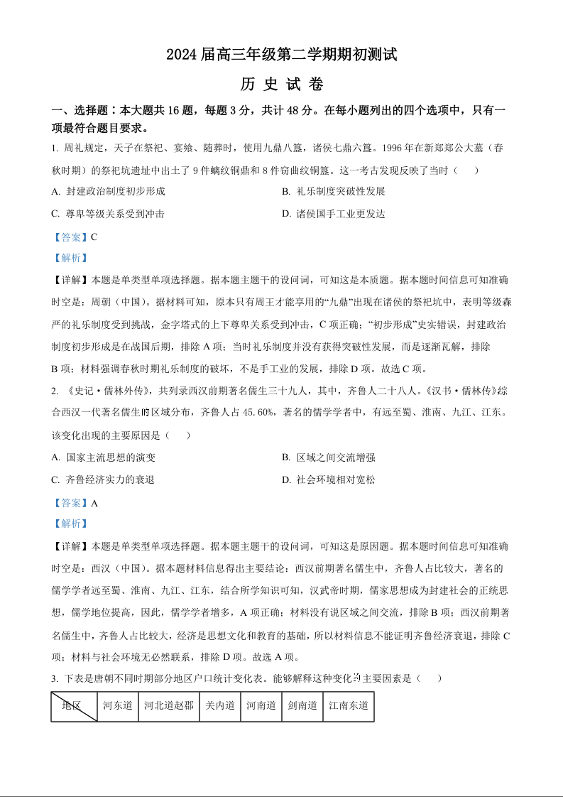 江苏四校2024届(苏高中+淮阴+海门+姜堰)高三下期初考试历史(精品解析版)