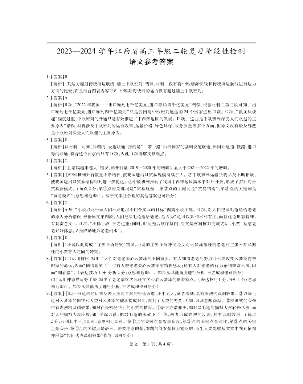 江西稳派上进联考2024届高三年级二轮复习阶段性测试语文答案