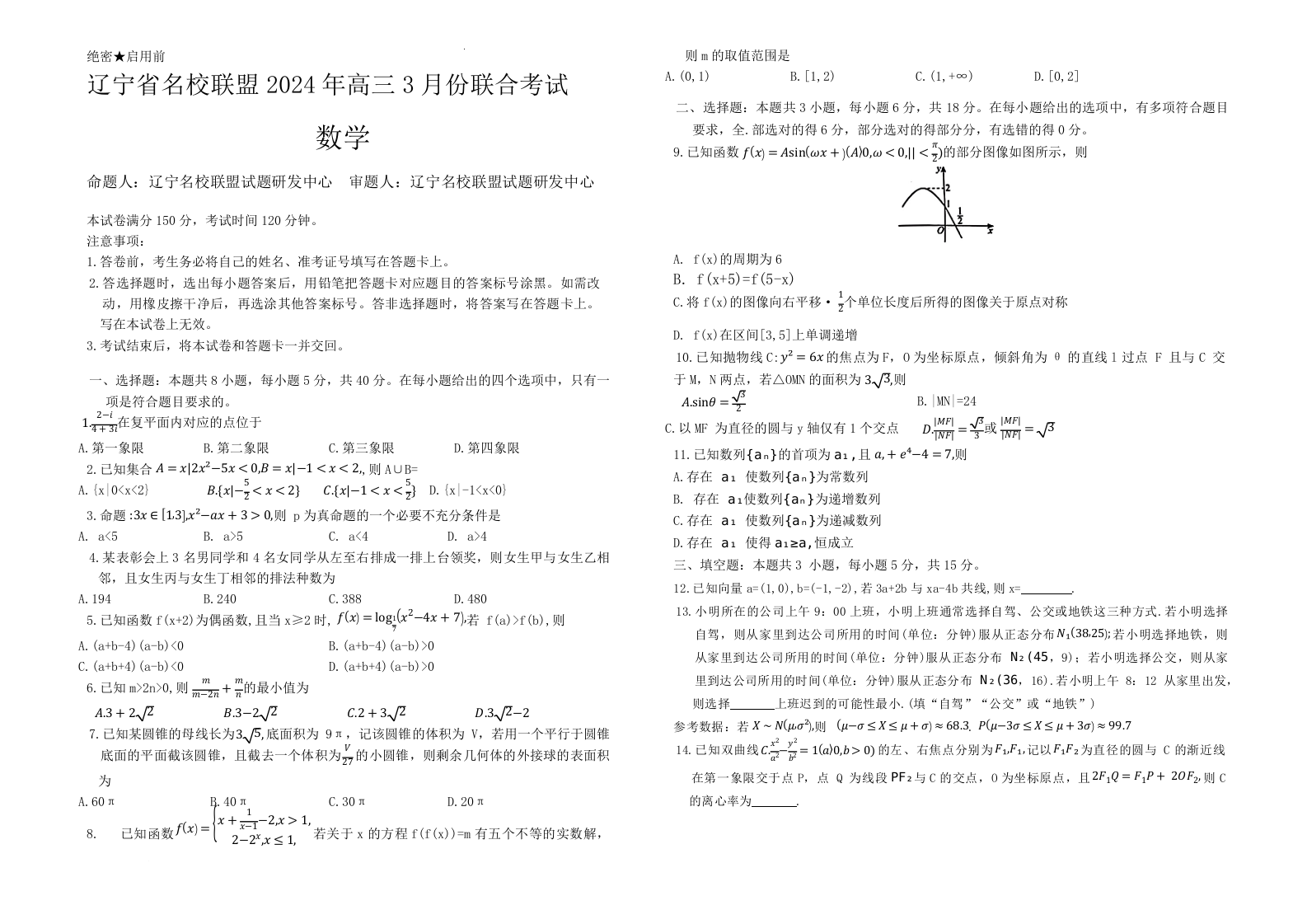 辽宁省名校联盟2024届高三下学期3月份联合考试数学