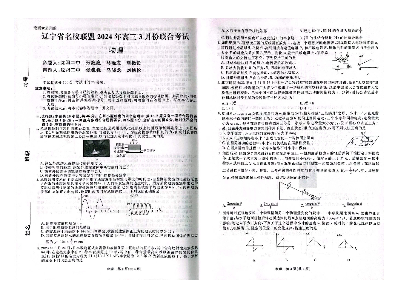 辽宁省名校联盟2024届高三下学期3月份联合考试物理