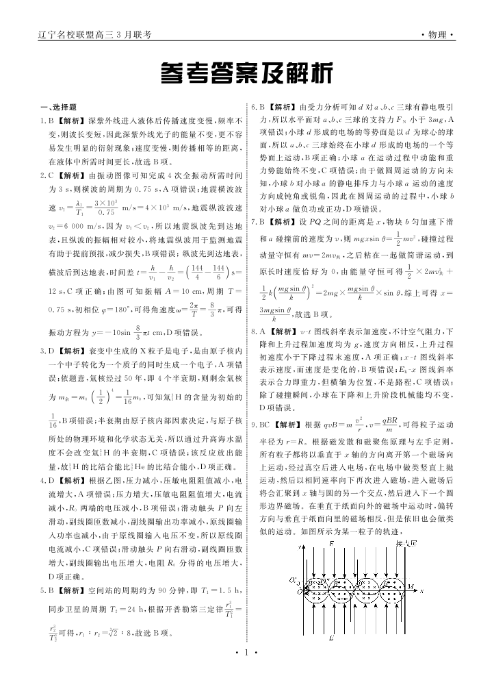 辽宁省名校联盟2024届高三下学期3月份联合考试物理答案