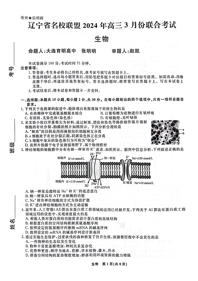 辽宁省名校联盟2024届高三下学期3月份联合考试生物