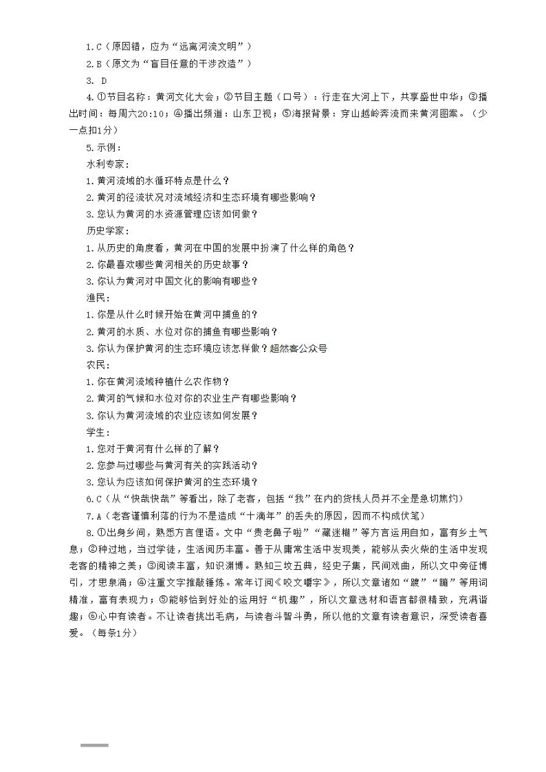 山东省聊城市2024年高考模拟试题(一) 语文答案