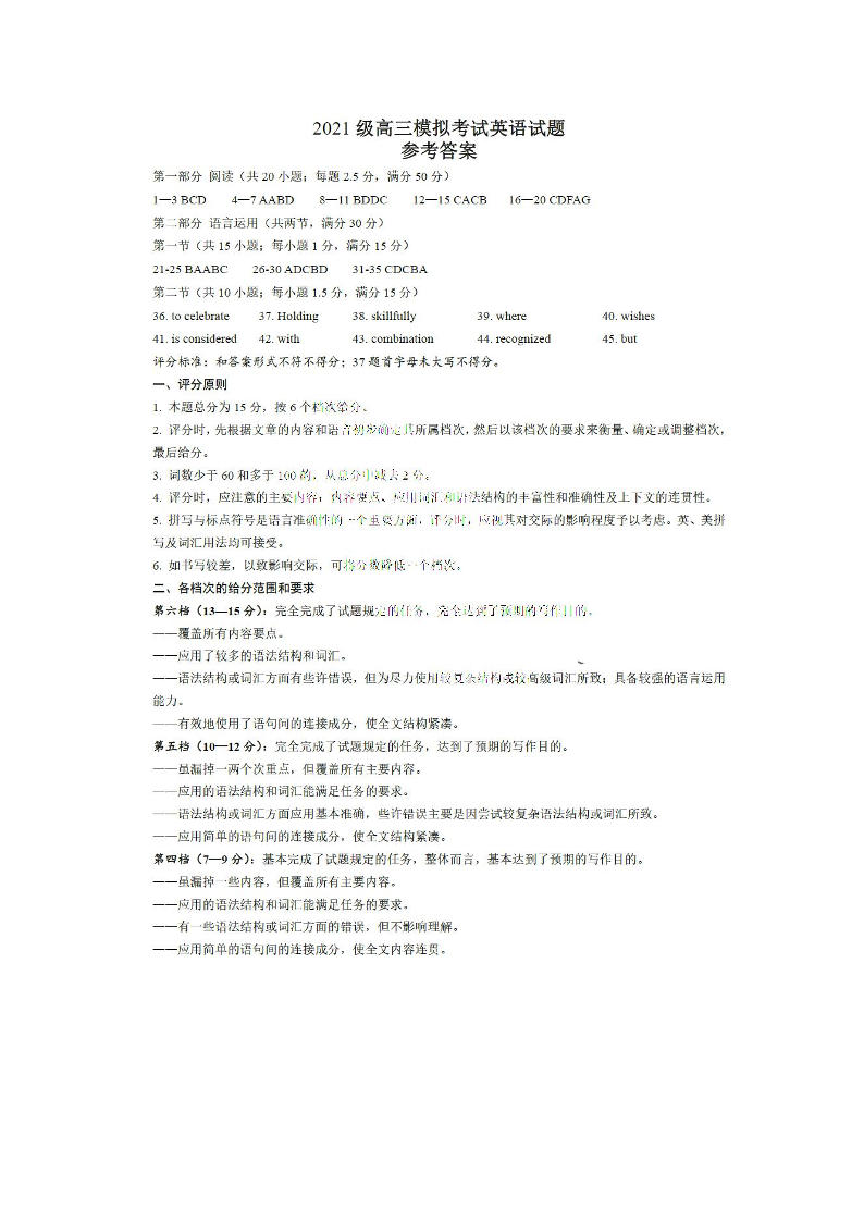 山东省日照市2024届校际联合考试高三一模(2月)英语答案