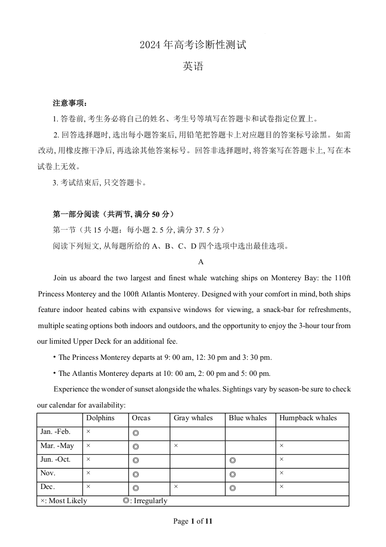 山东省烟台德州东营2024年高考诊断性测试(一模)英语