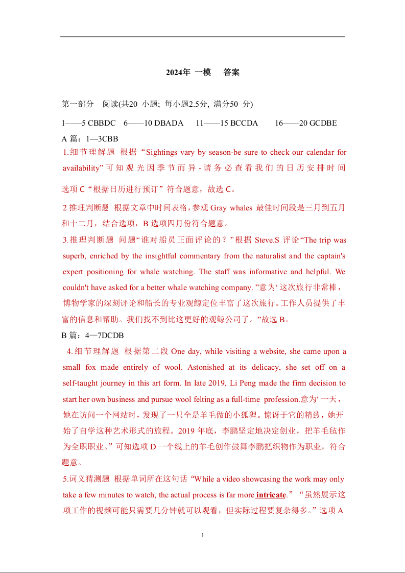 山东省烟台德州东营2024年高考诊断性测试(一模)英语答案